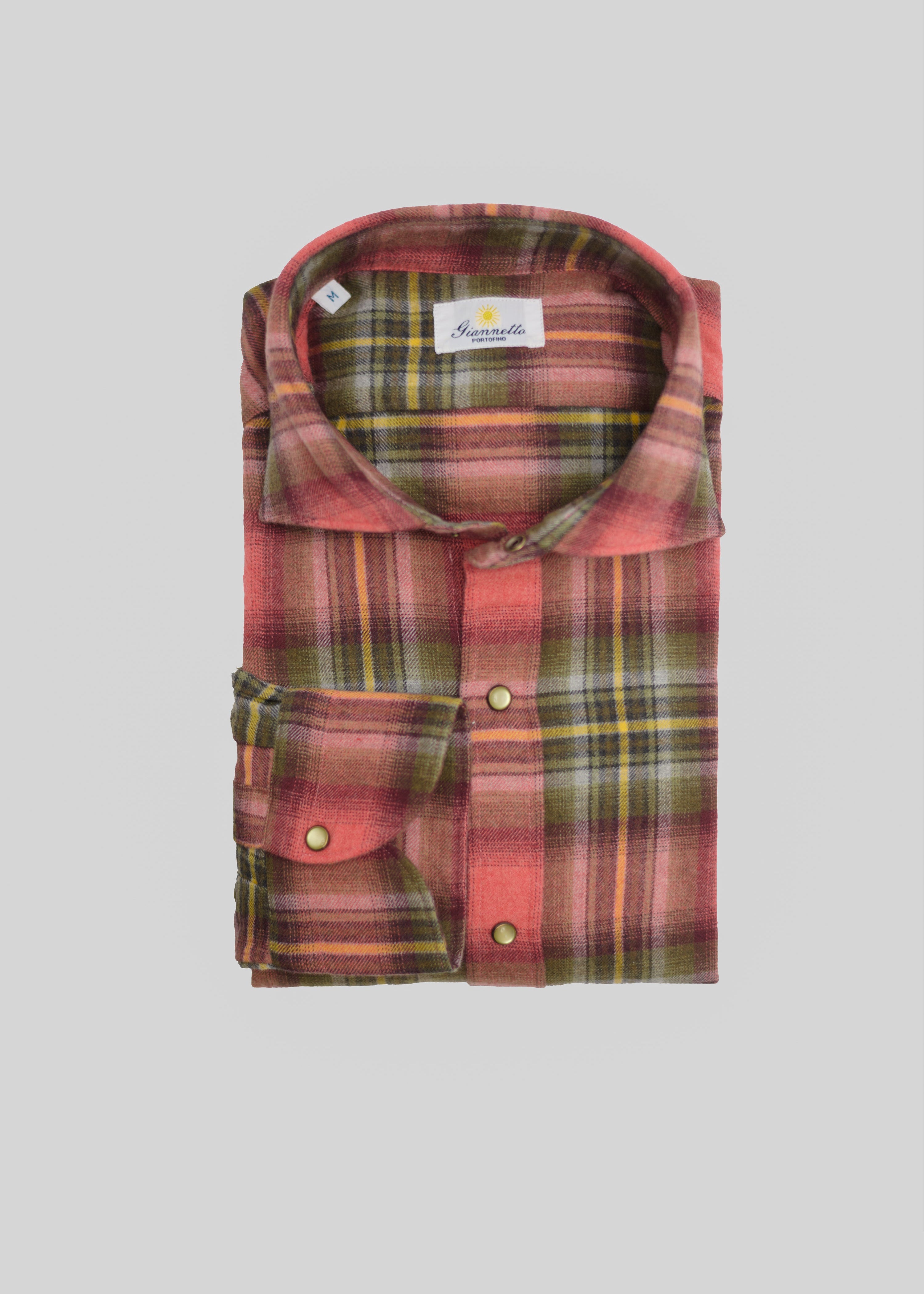GIANNETTO PORTOFINO LONG SLEEVE SPORT SHIRT FLANNEL WITH SNAPS IN PINK SAGE