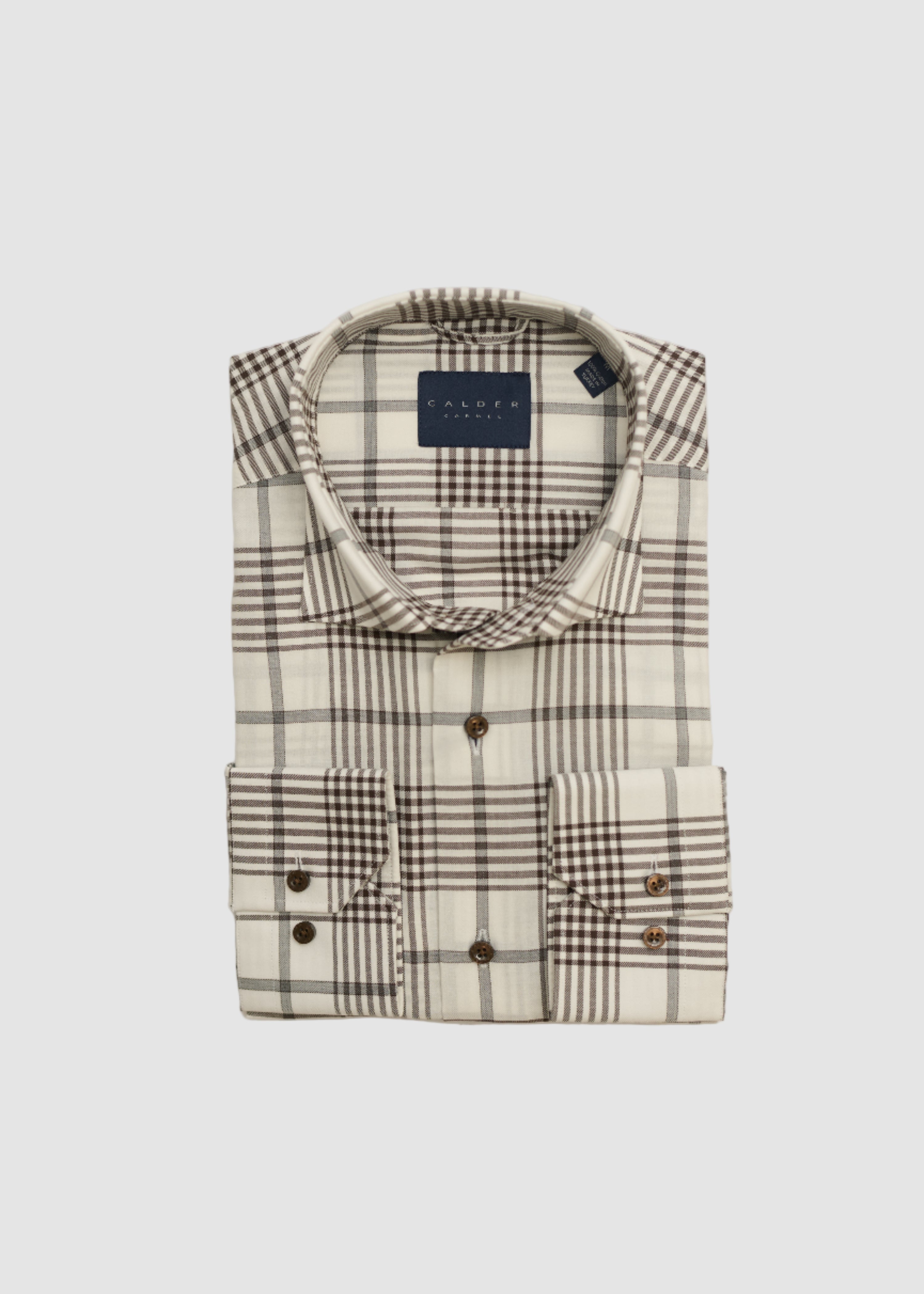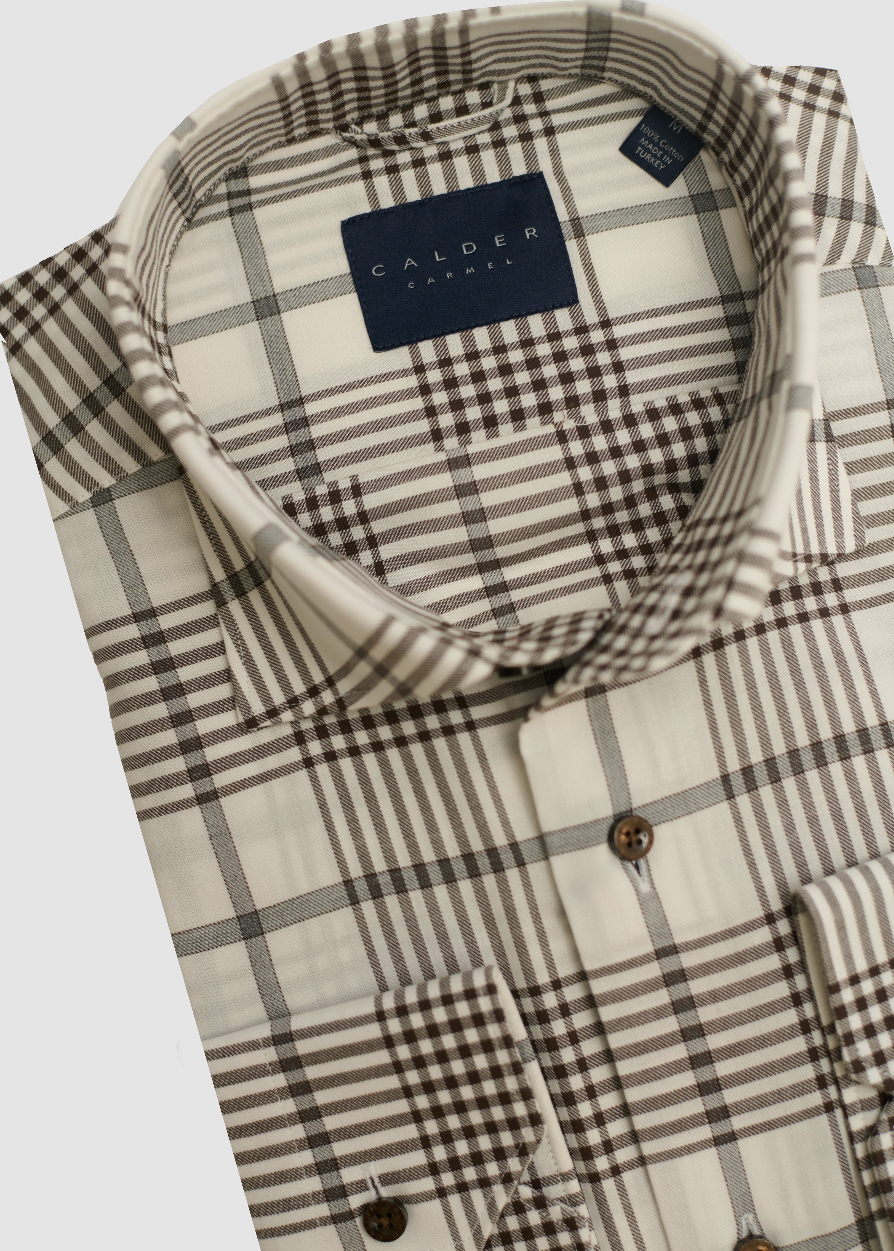 CALDER LONG SLEEVE CHECKED SPORT SHIRT IN IVORY PLAID