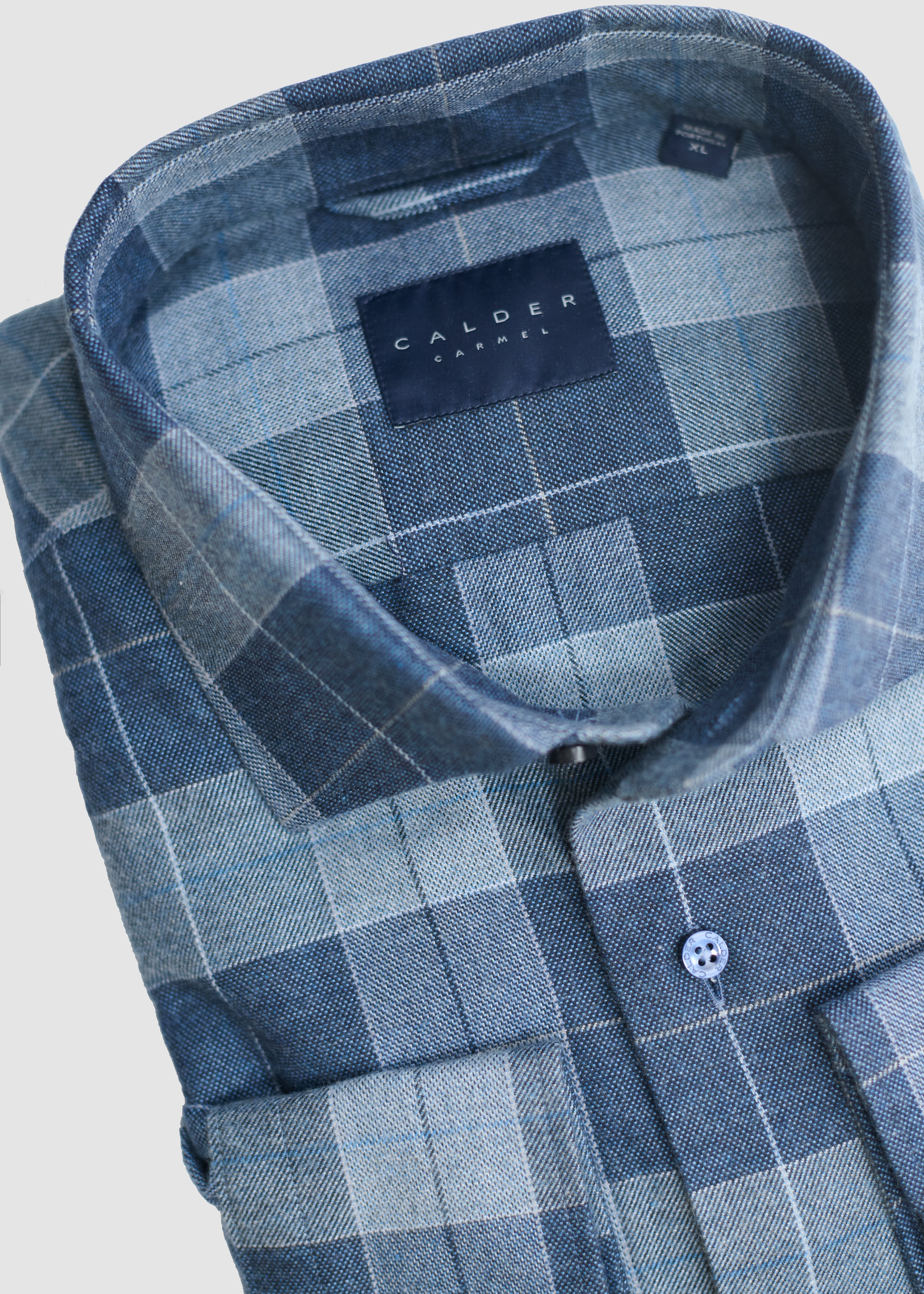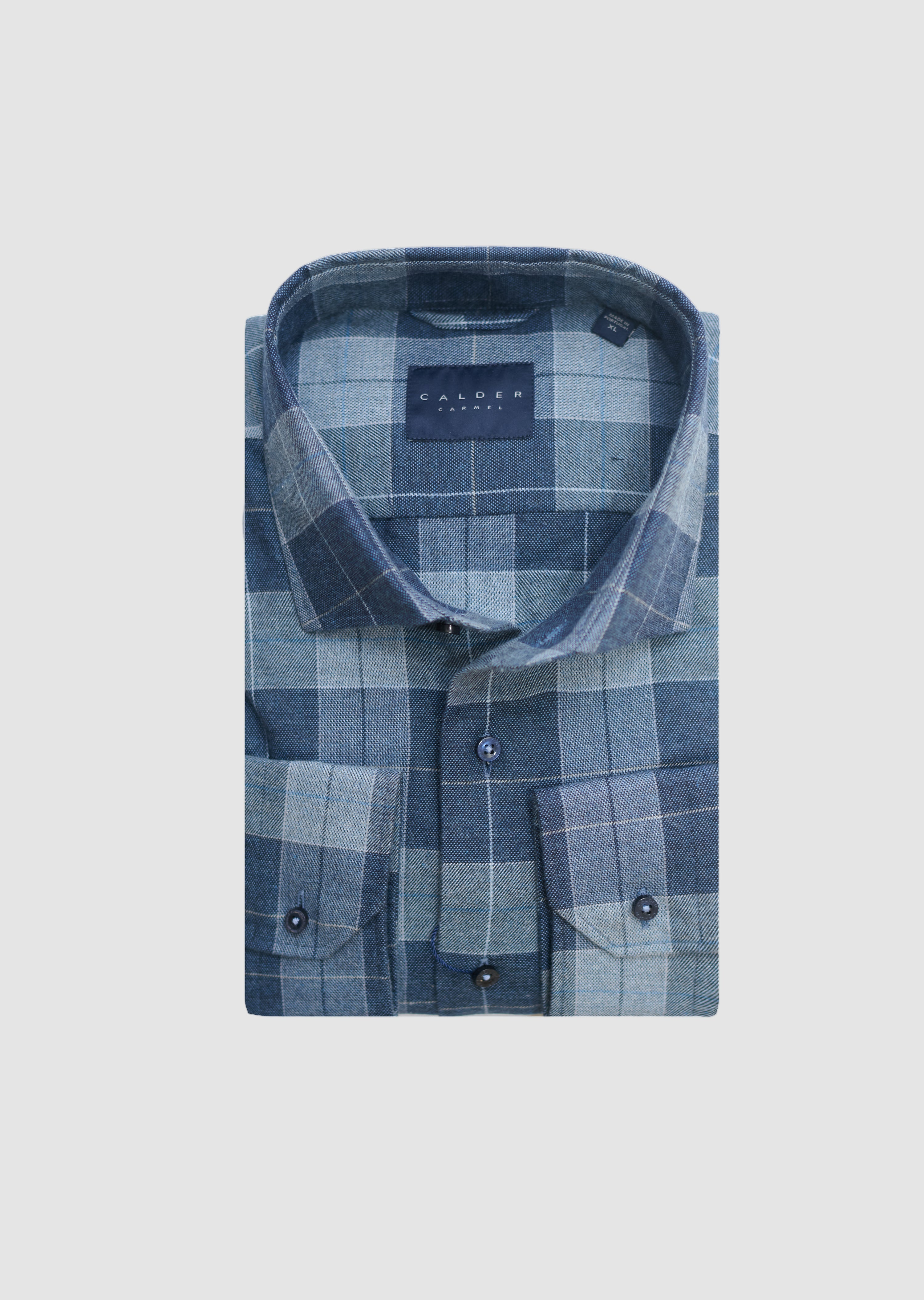 CALDER LONG SLEEVE SPORT SHIRT IN NAVY BRUSHED PLAID
