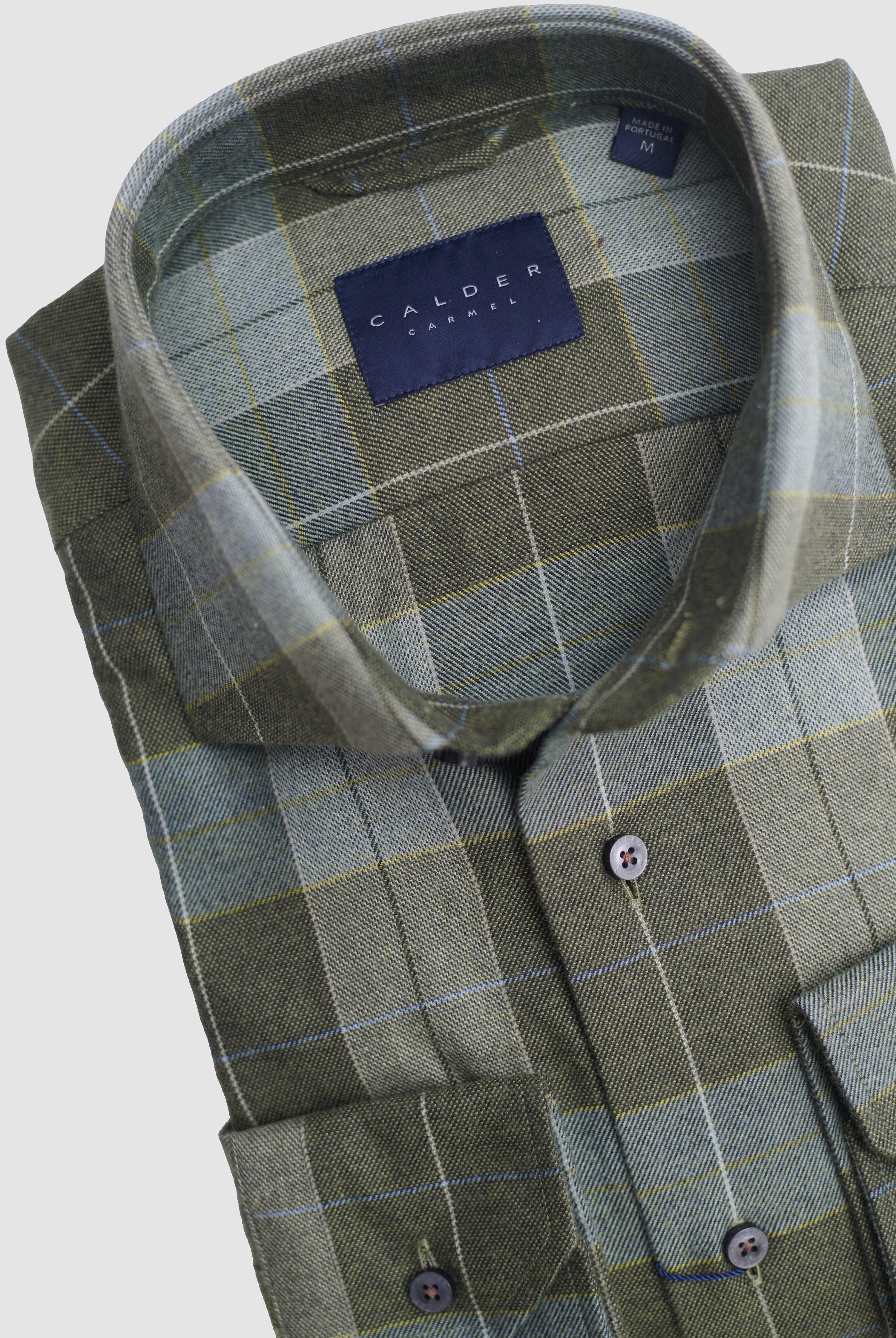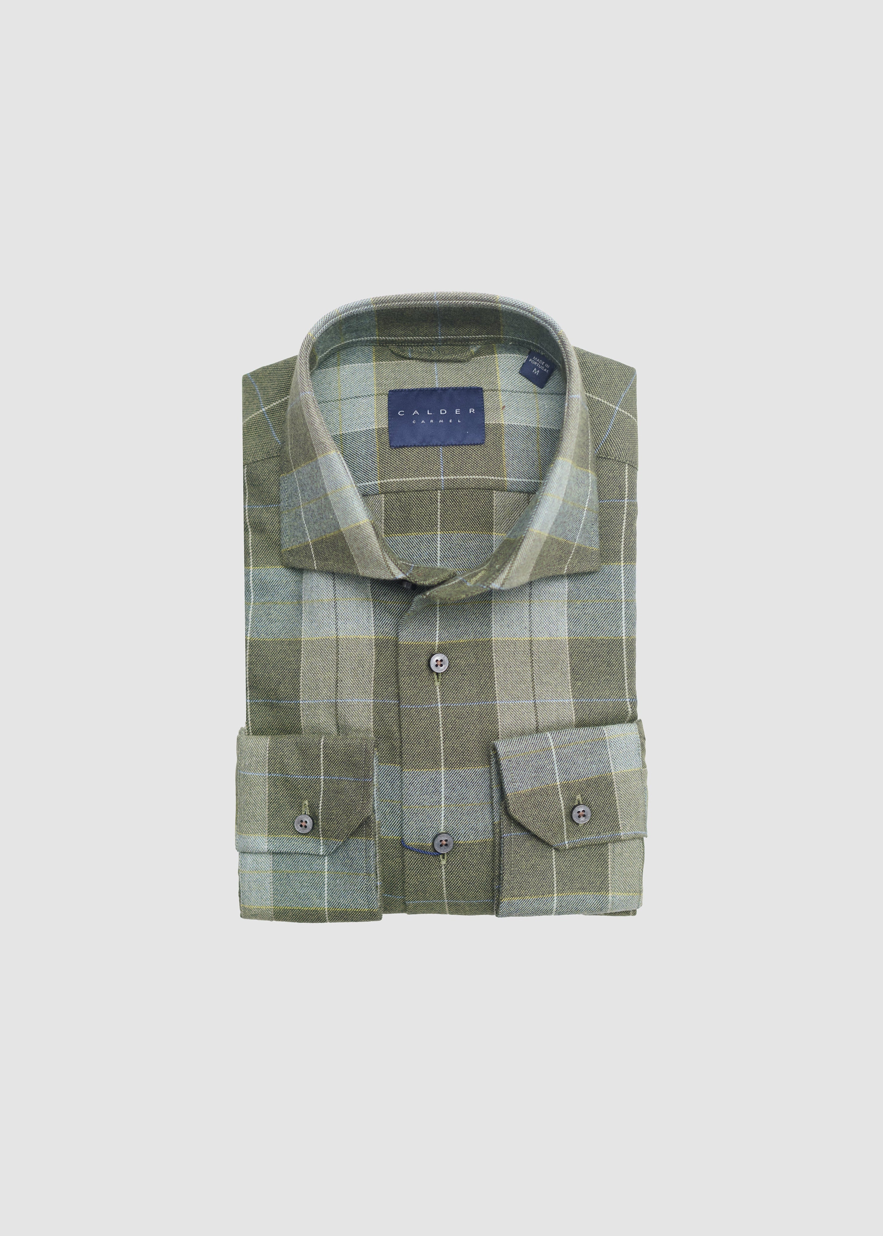 CALDER LONG SLEEVE SPORT SHIRT LUXE MELANGE DOUBLE BRUSHED EXPLODED PLAID IN OLIVE