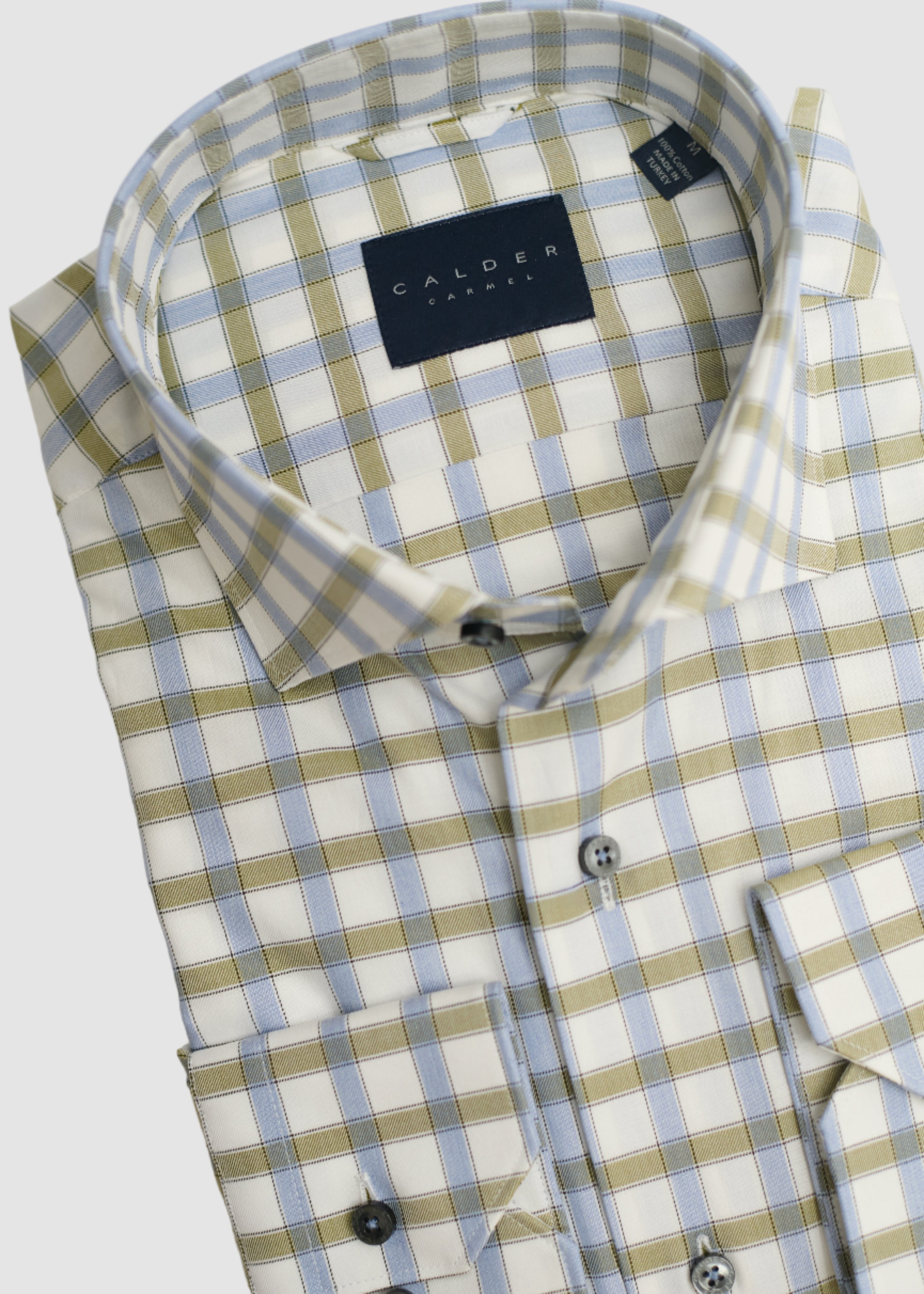CALDER WINDOWPANE LONG SLEEVE SPORT SHIRT IN OLIVE