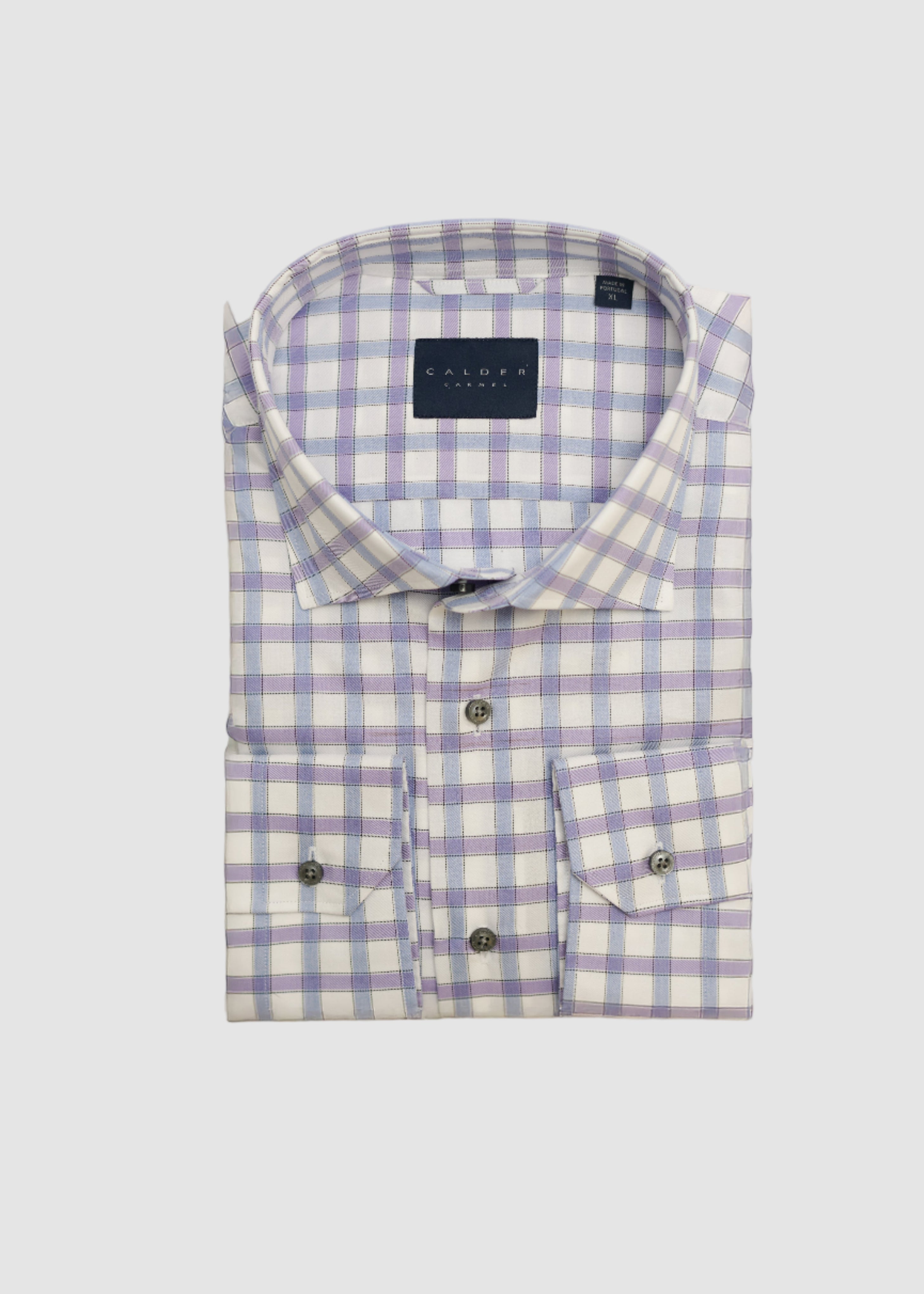 CALDER MELANGE WINDOWPANE LONG SLEEVE SPORT SHIRT IN PLUM