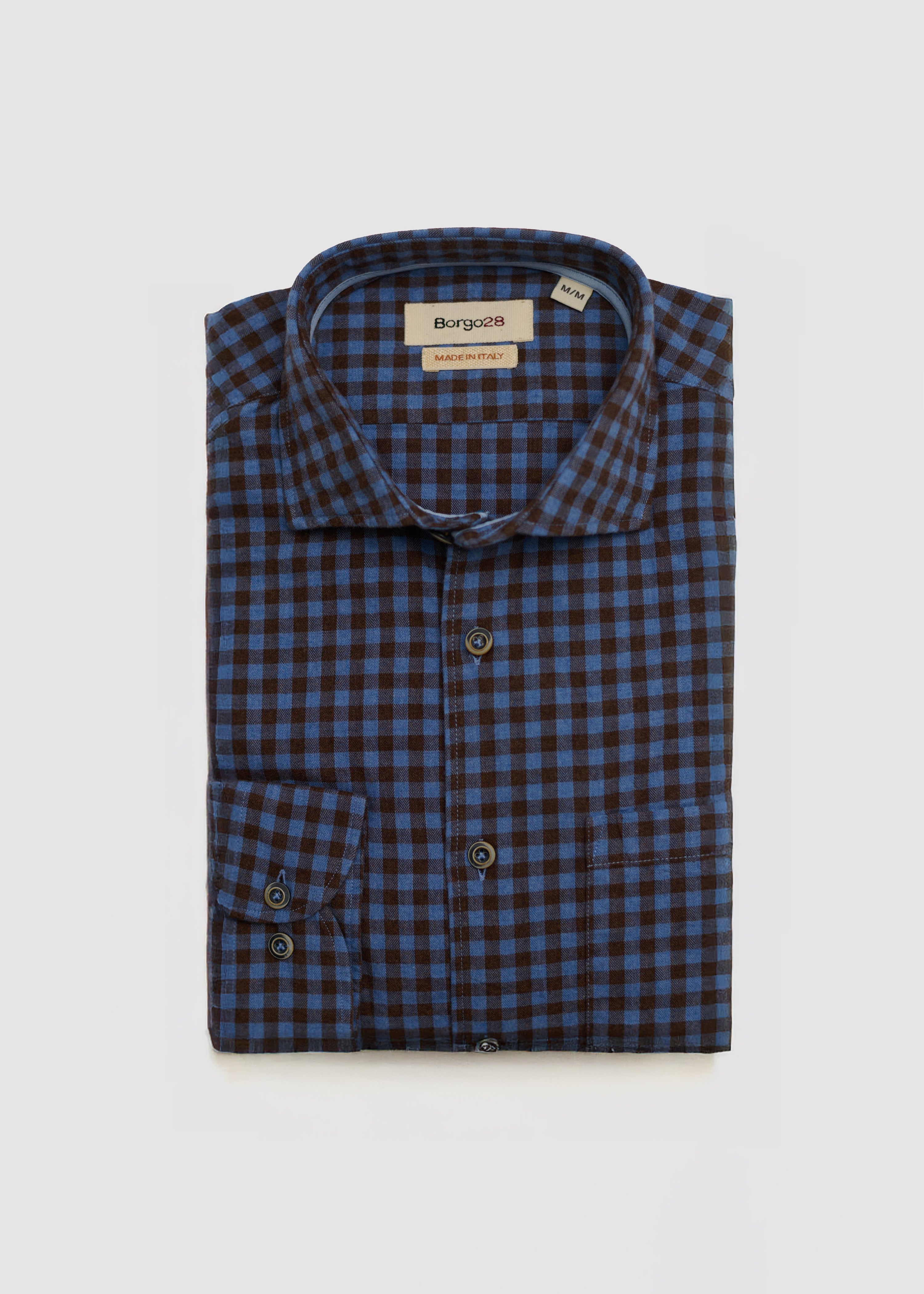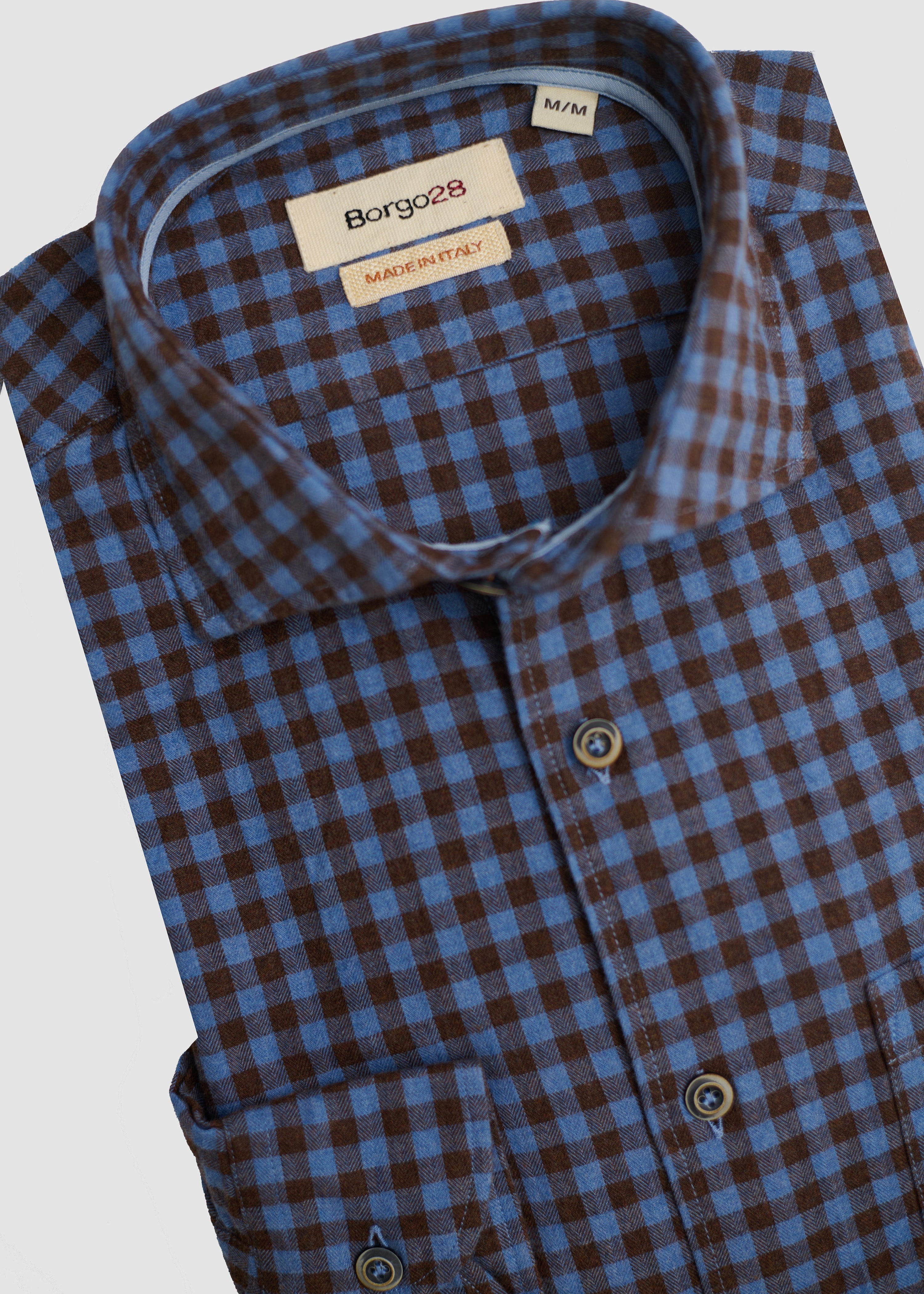 BORGO CHECKERED LONG SLEEVE SPORT SHIRT IN BLUE BROWN GINGHAM
