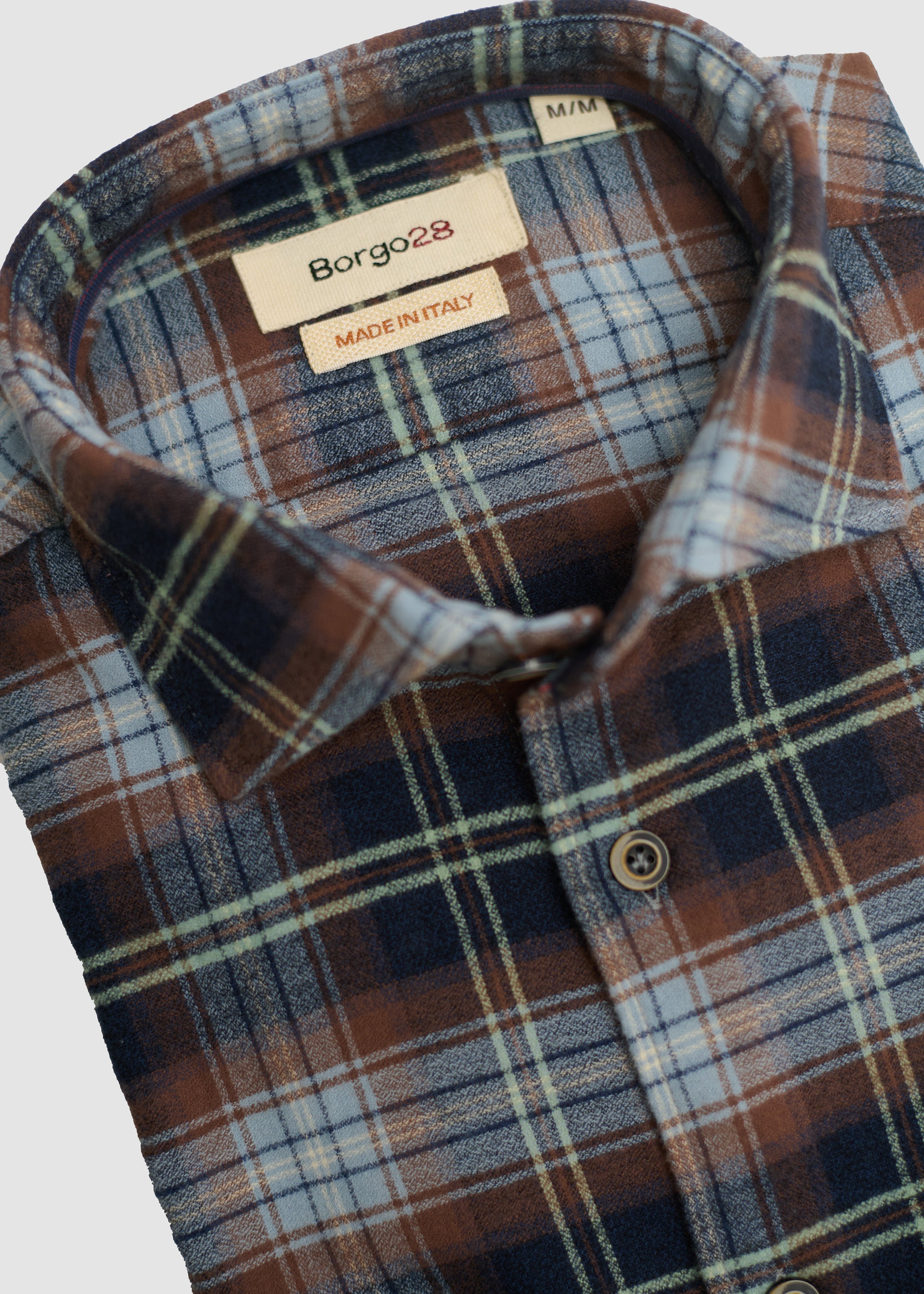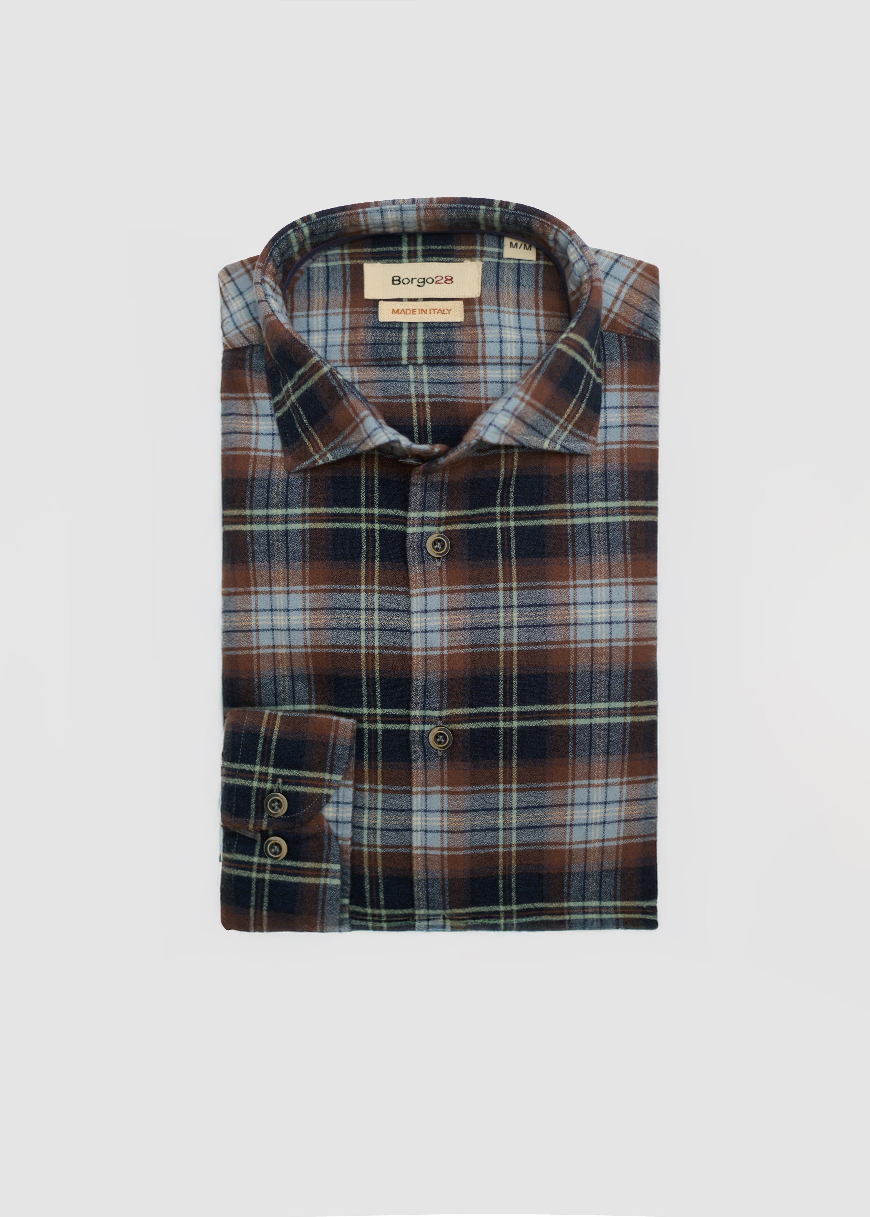 BORGO LONG SLEEVE SPORT SHIRT IN BIG BLUE BRUSHED PLAID