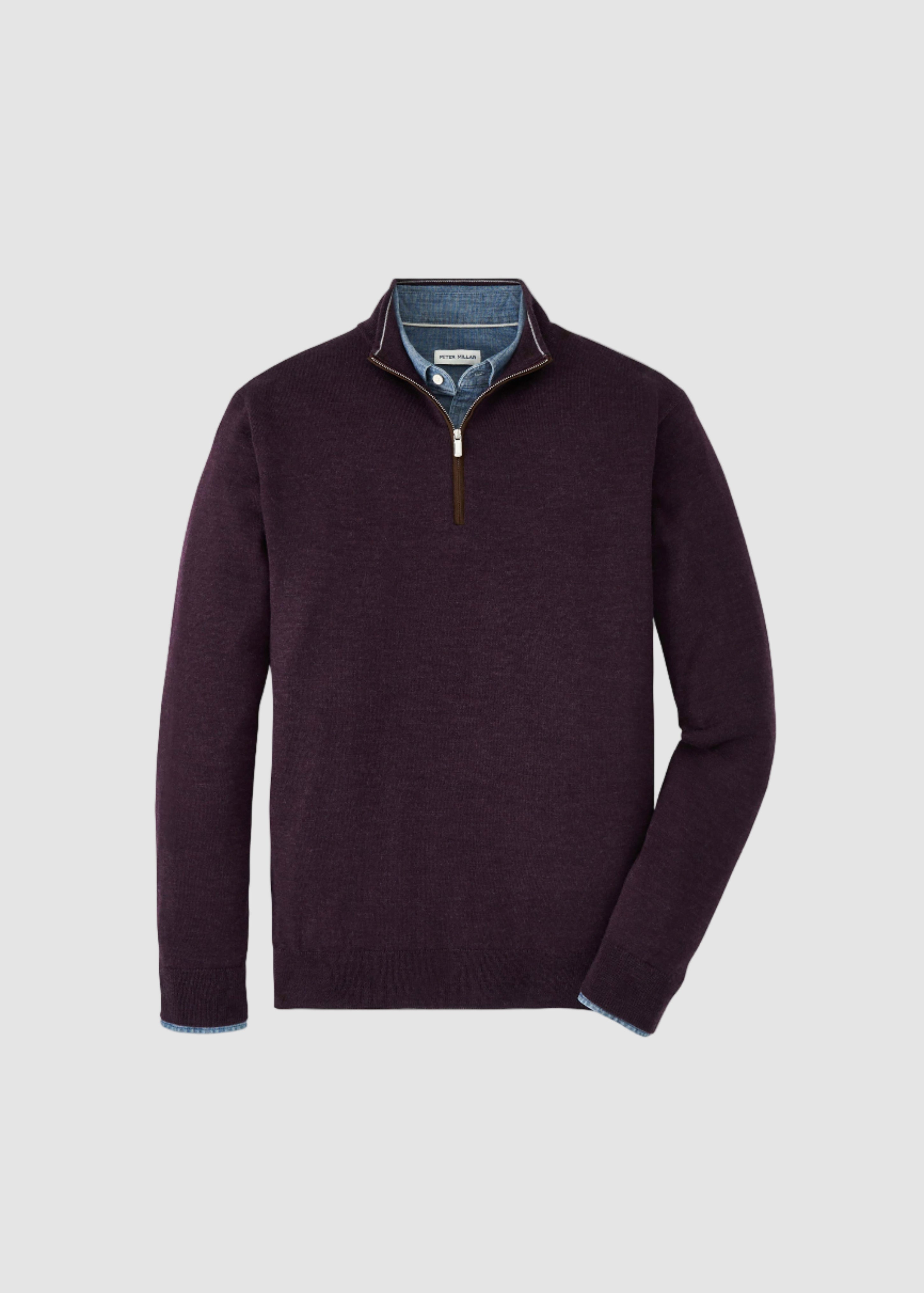PETER MILLAR AUTUMN CREST SUEDE TRIM QUARTER-ZIP IN MIDNIGHT CRAPE