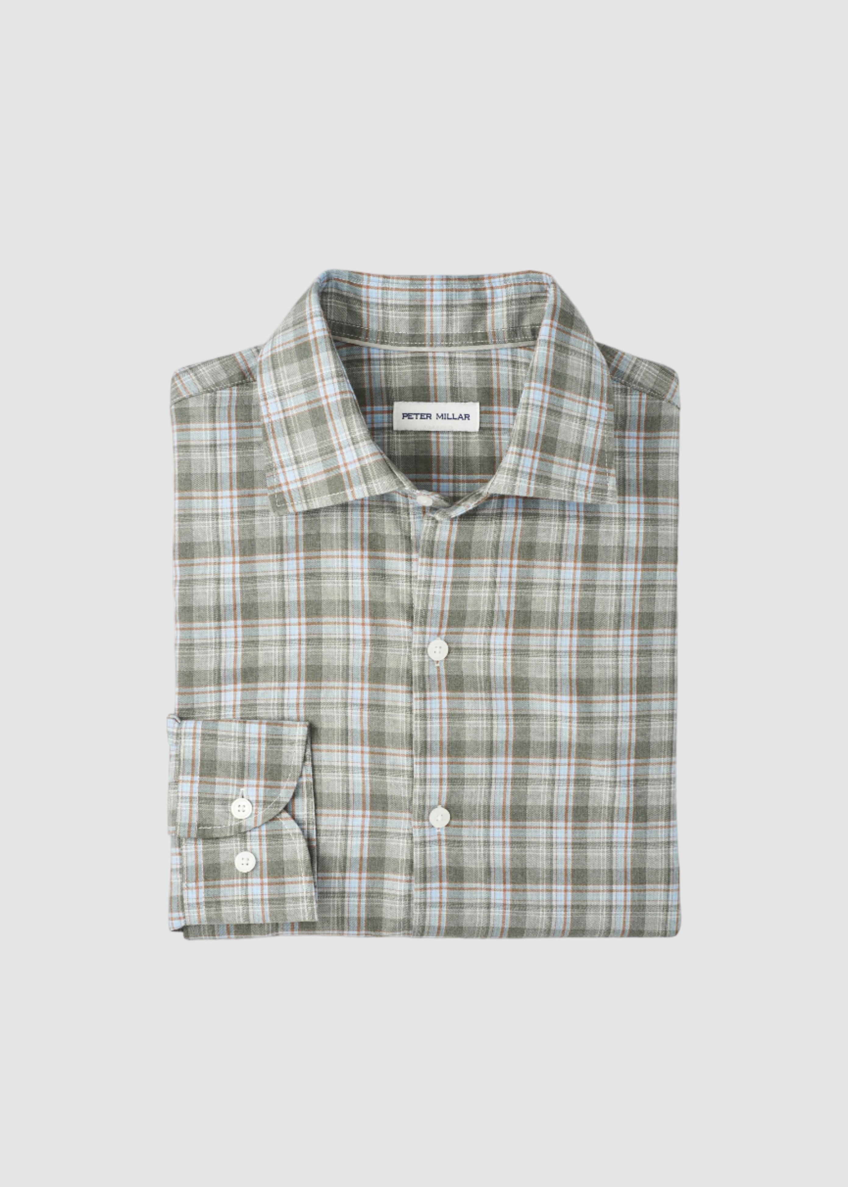 PETER MILLAR WHITECAP PERFORMANCE FLANNEL SPORT SHIRT IN BASIL