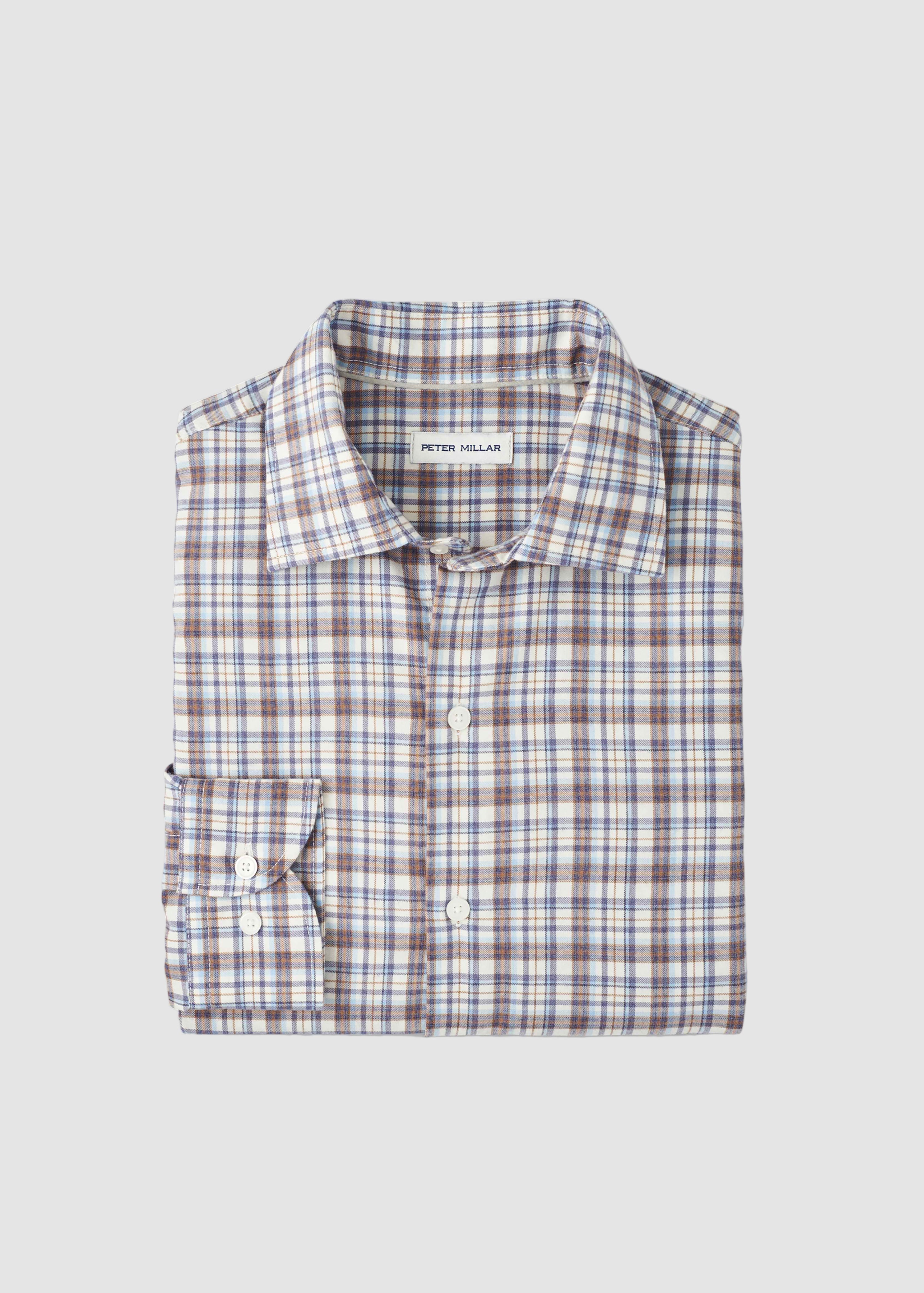 PETER MILLAR WAYNESVILLE PERFORMANCE FLANNEL SPORT SHIRT IN WINTER IVORY