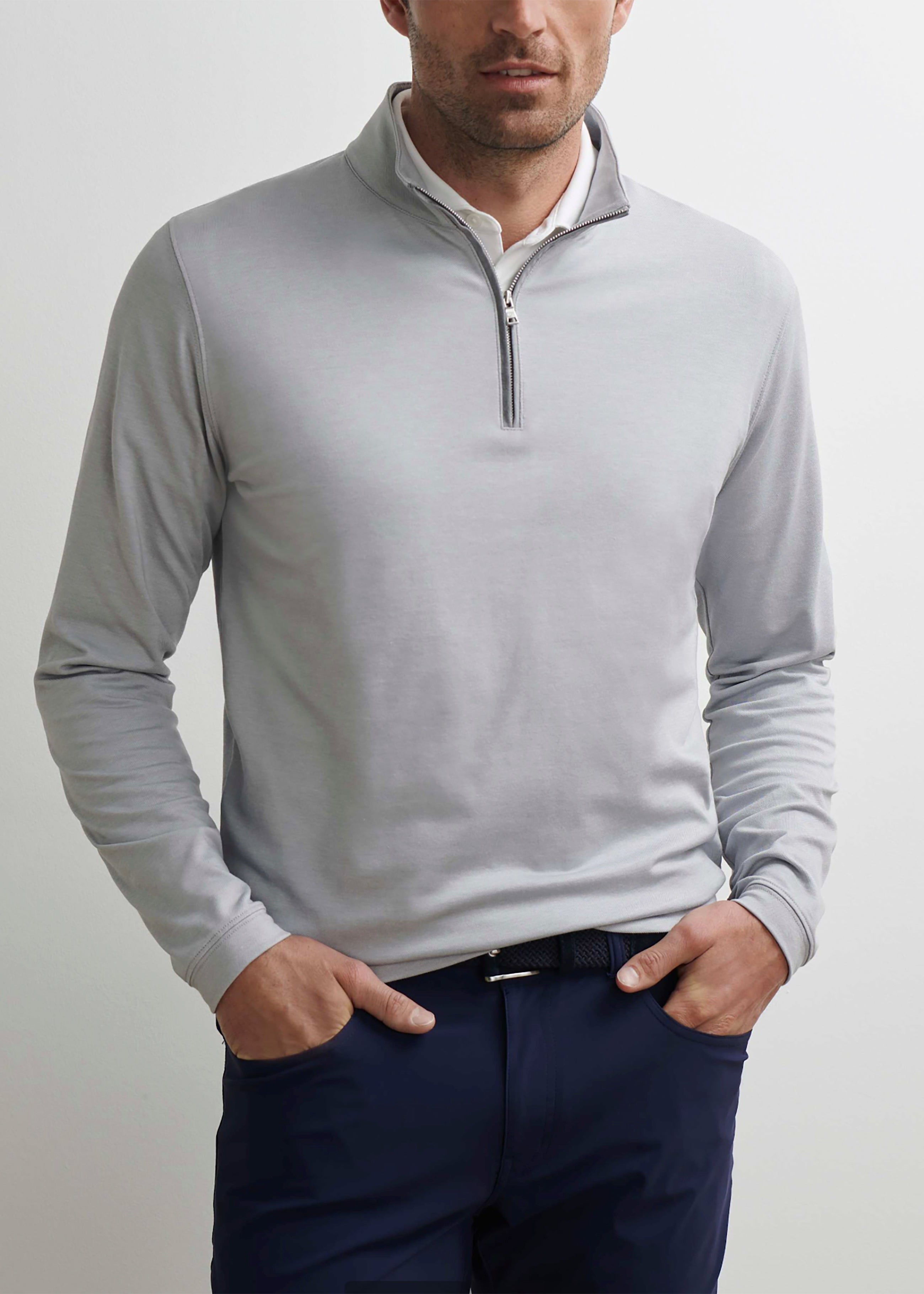 PETER MILLAR ALBATROSS COTTON-BLEND PIQUE QUARTER-ZIP IN GALE GREY
