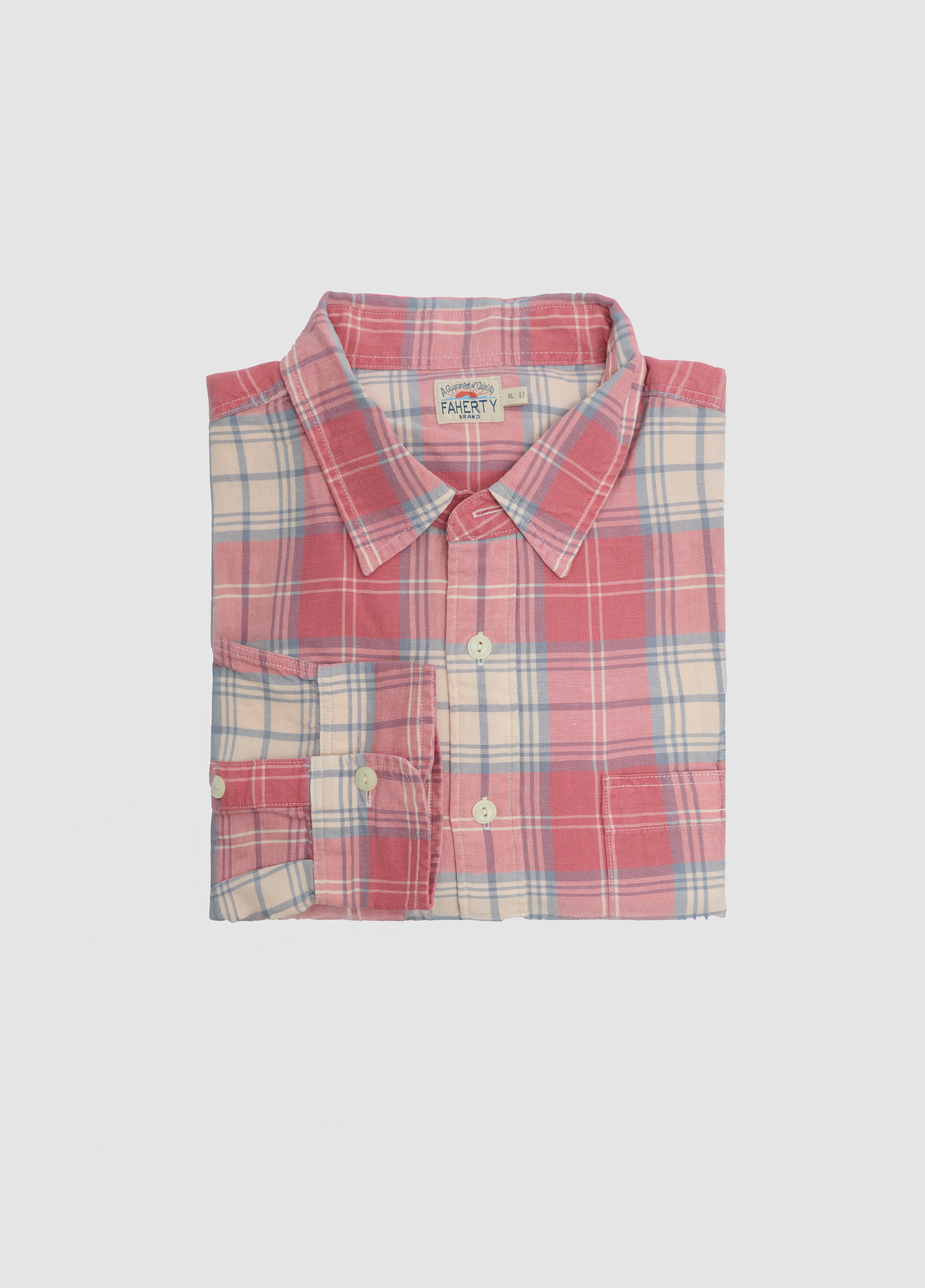 FAHERTY TRIED & TRUE CHAMBRAY WORKSHIRT IN CARNATION FIELD PLAID