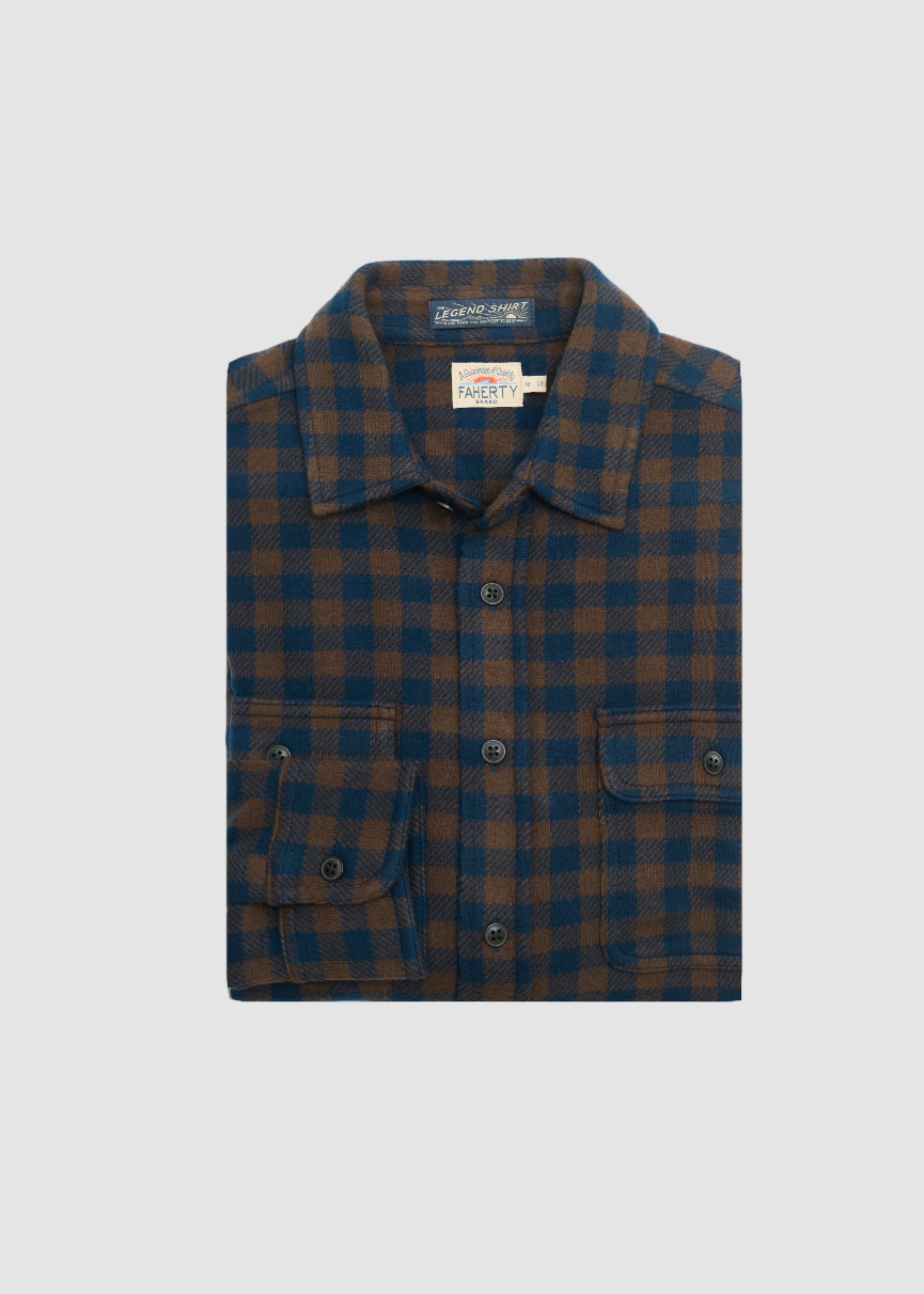 FAHERTY LEGEND CHECKERED SWEATER SHIRT IN NAVY WOODLAND