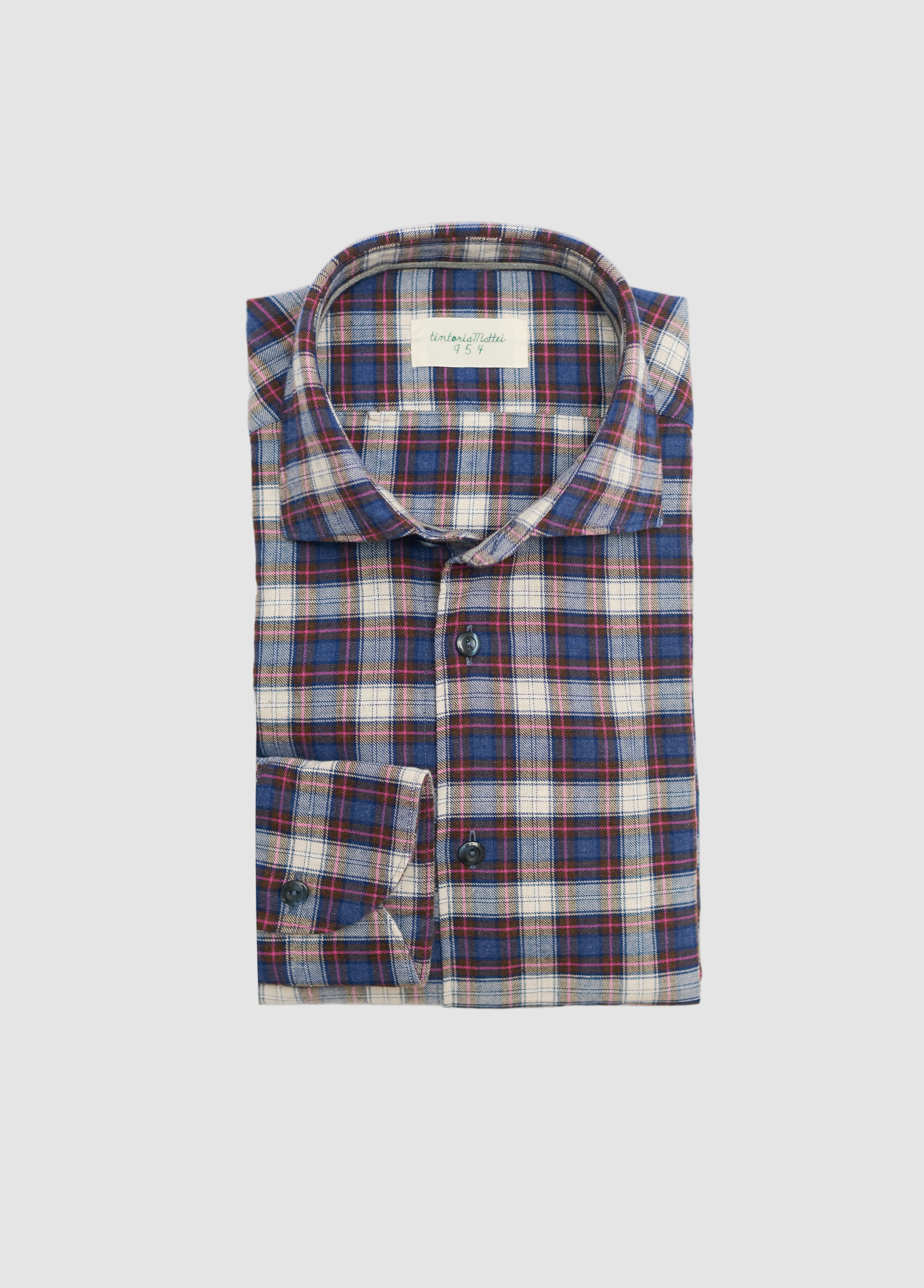 TINTORIA MATTEI LONG SLEEVE SPORT SHIRT IN BLUE RASPBERRY PLAID