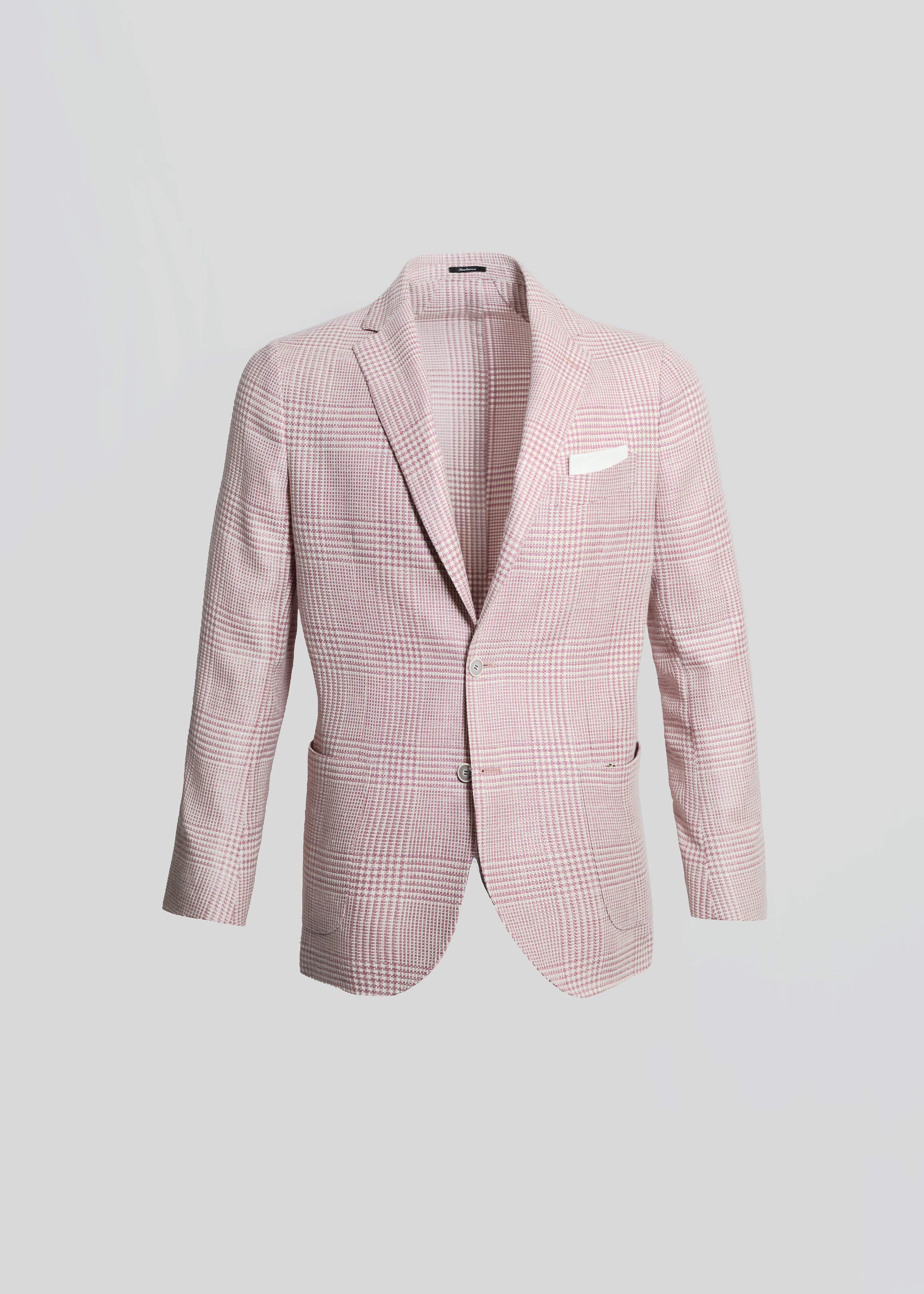 SARTORIO SPORT COAT WOOL SILK LINEN BLEND IN PINK PLAID