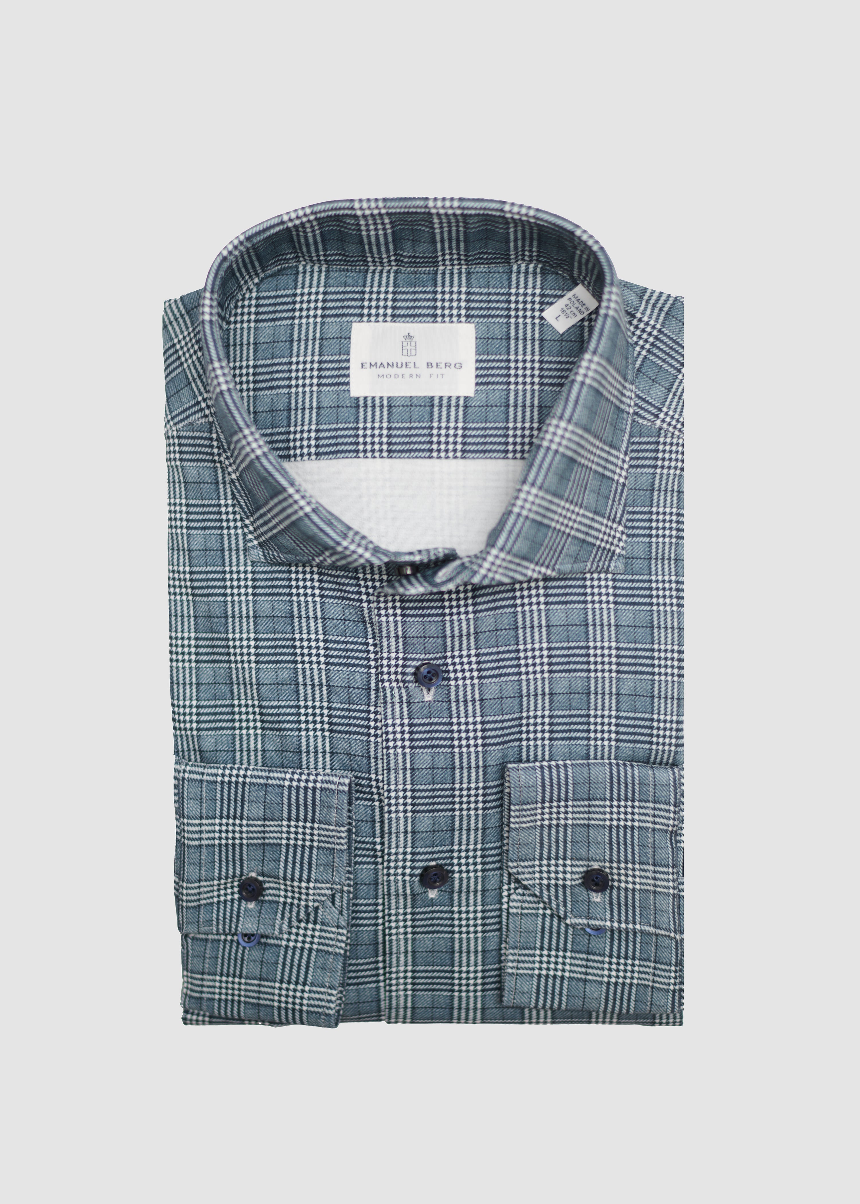 EMANUEL BERG LONG SLEEVE SPORT SHIRT 4 FLEX IN NAVY PLAID