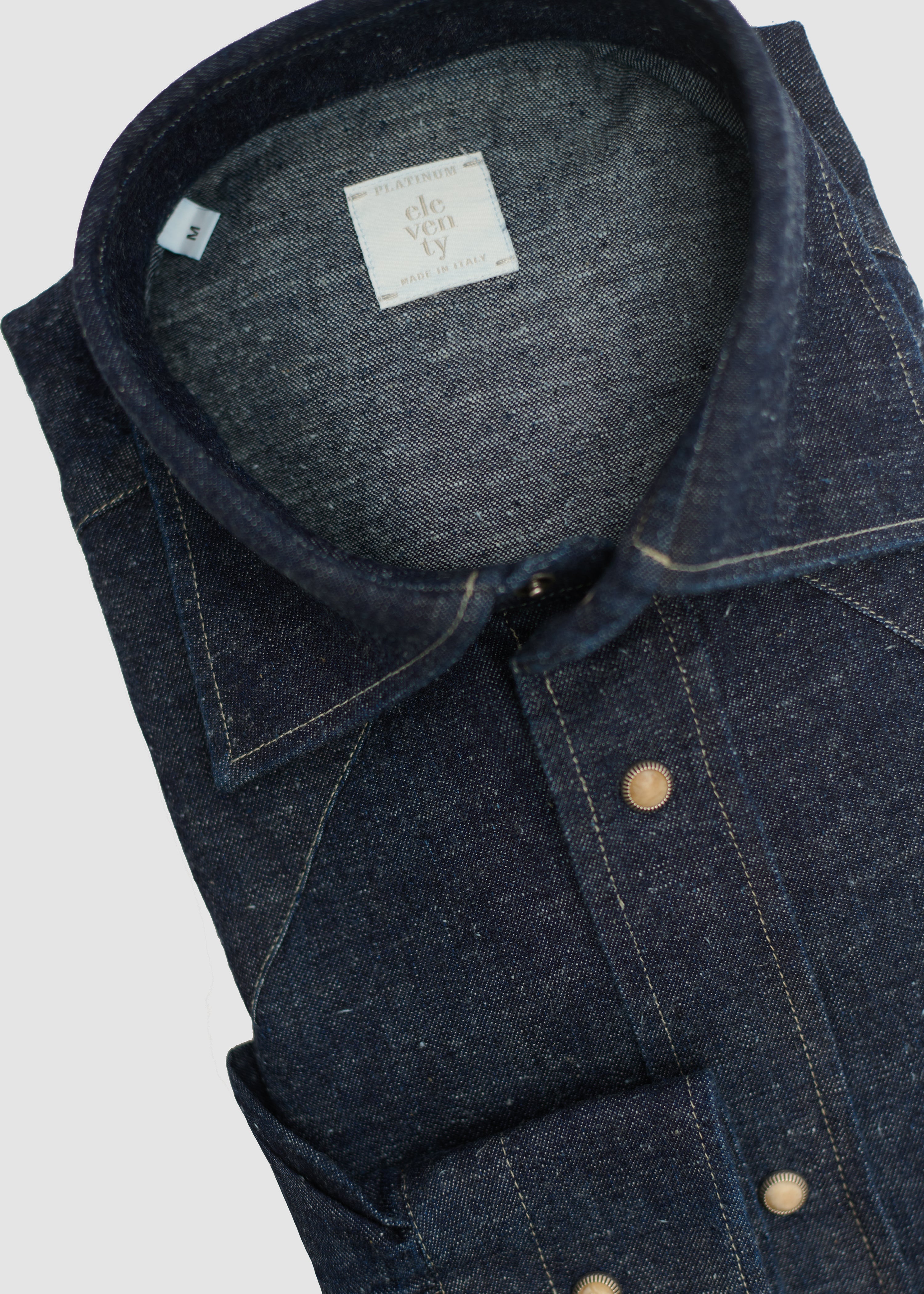 ELEVENTY LONG SLEEVE SPORT SHIRT IN BLUE